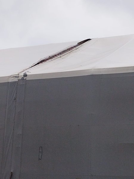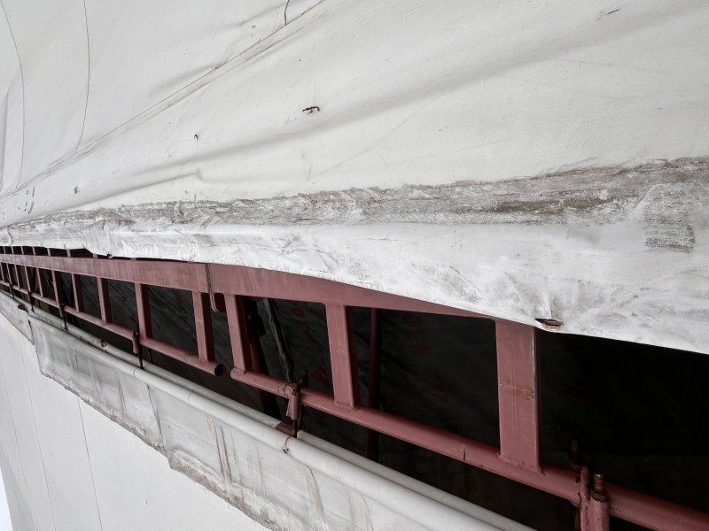 Ремонт кровли ПВХ тента ангара 30х50м
